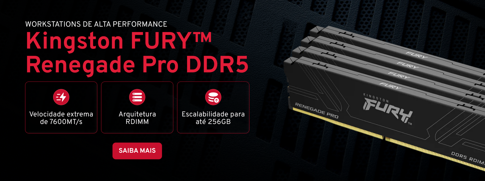 KF576RH40RBK4-128 - Kit de módulos de memória de 128GB (4 X 32GB) DIMM DDR5 7600MT/s FURY Renegade Pro RDIMM 1,4V 1Rx8 288 pinos para desktop / gamers.