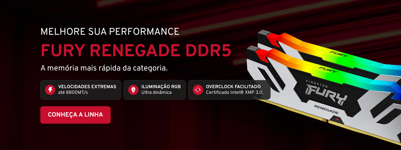 Memória de 24GB CUDIMM DDR5 8800Mhz FURY Renegade RGB